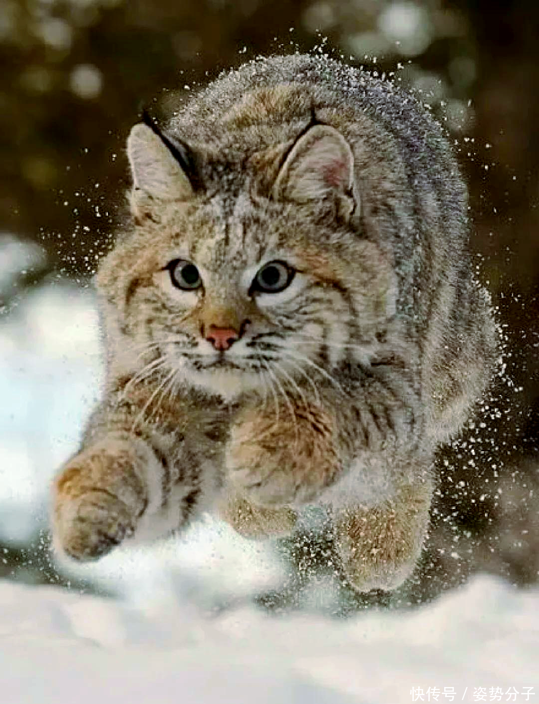 相比之下,加拿大猞猁体型就相对小一点了,体重最大只有17公斤左右。和欧亚猞猁的毛色发黑不同,加拿大猞猁的毛色相对浅一点。这些猞猁分布在加拿大和美国境内,从平原到海拔5000米的高原都能找到它们的身影,不过它们喜欢生活在森林、草甸、灌木、山岩地带。所以林雪猁这个名字,翻译得是相当贴切了。