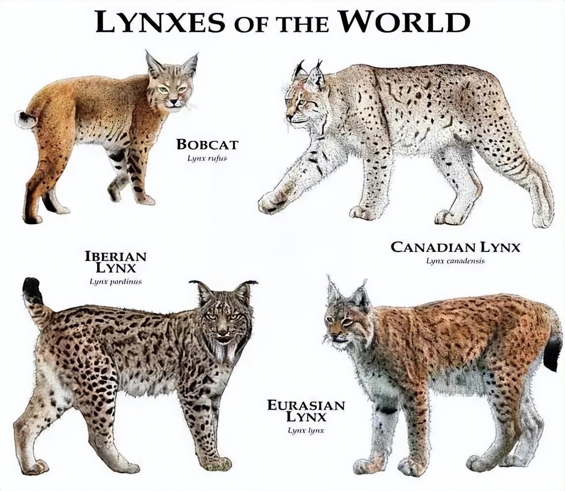 属也不是最细的划分,再往下还有种(再往下的亚种咱们就不讨论了)。目前世界上一共有4种猞猁,分别是欧亚猞猁、伊比利亚猞猁、加拿大猞猁和短尾猫。在咱们国内分布的,就是其中的欧亚猞猁,所以国内称猞猁通常都是专指欧亚猞猁。